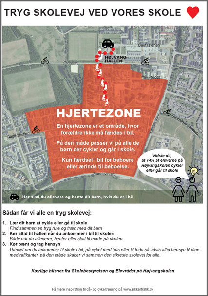 Efter norsk inspiration er flere og flere danske kommuner begyndt at etablere hjertezoner ved skoler. Det sker for at modvirke tendensen til, at flere forældre afleverer deres børn i bil i stedet for at lade dem gå og cykle til skole.