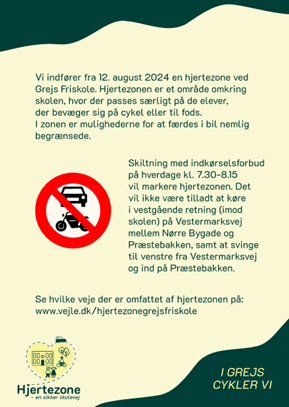 I hjertezonen er der indkørselsforbud for motorkøretøjer ved elevernes mødetid om morgenen – typisk i tidsrummet 7.30-8.30. Beboer- og arbejdskørsel tillades fra enkelte vejadgange i zonen. Ved enkelte skoler undtages desuden trafikanter i motorkøretøjer med særlig tilladelse for at tilgodese elever og forældre med funktionsnedsættelser, hvor det er nødvendigt for elevens fremmøde og forældrenes adgang til at deltage i skolens aktiviteter.